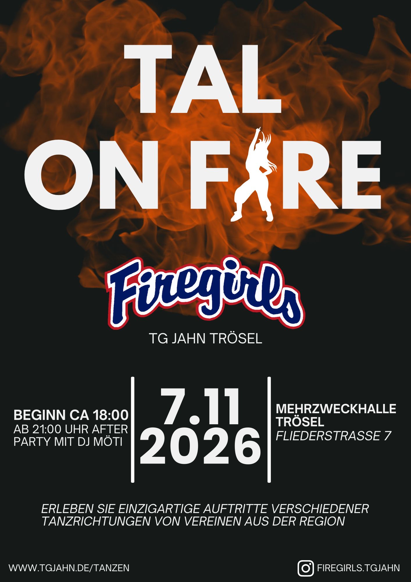 Nach der Tanzveranstaltung Tal On Fire, von den Firegirls der TG Jahn Trösel, findet in der Mehrzweckhalle Trösel auch noch eine öffentliche Afterparty statt. Wir gehen wieder zurück in die 90er und 2000er. Also markiert euch den Tag im Kalender und dann bringen wir zusammen die Halle zum Beben. Ich freue mich auf Euch! Beginn wird ca 21 Uhr sein.