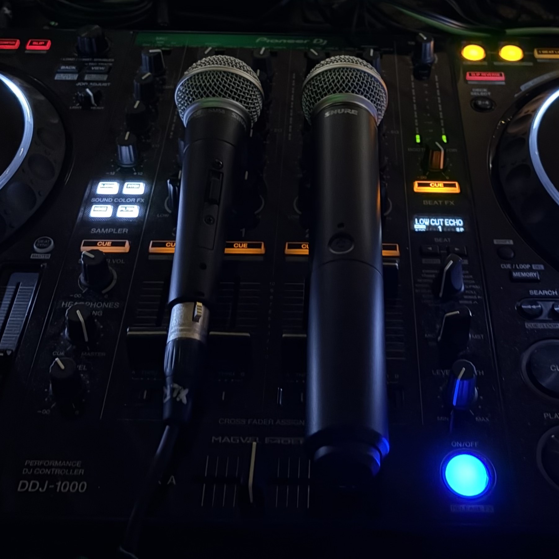 Das unkaputtbare und bekannte Mikro für alle Anwendungen habe ich einmal als Funkversion sowie als Kabelversion. Es überzeugt außerdem mit gewohnter Shure Qualität, also klarem Sound und auch einer guten Reichweite beim Funkmikro.